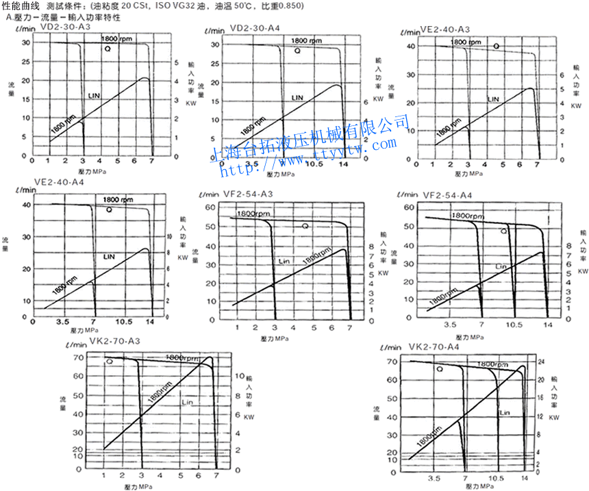 中高壓雙聯(lián)變量葉片泵VD2D2~VK2K2性能曲線
