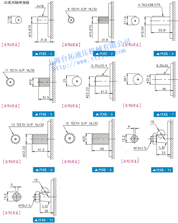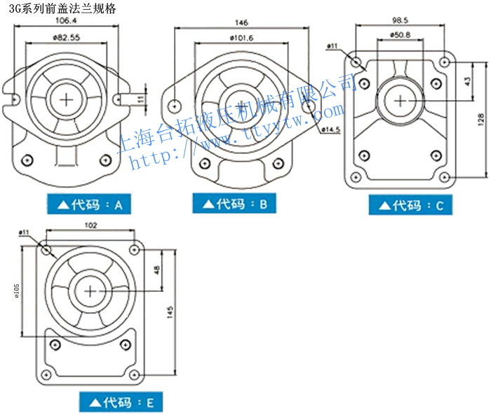 3 G B 6/7 P2 52 R 系列 型式/功能 前蓋法蘭規格 軸伸規格 出入油口規格 型號 旋向(R,L) 備注:R表示右轉,面向軸伸順時針;L表示左轉,面向軸伸逆時針。2、假設您所要的前泵排量是52.0ml/rev,旋向是右旋,正確的訂購型號:3GB6P252R。