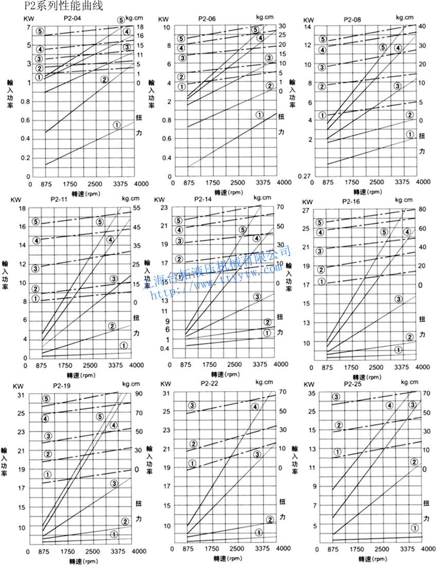 定量齒輪泵P2系列性能曲線(輸入功率-轉速-扭力特性)