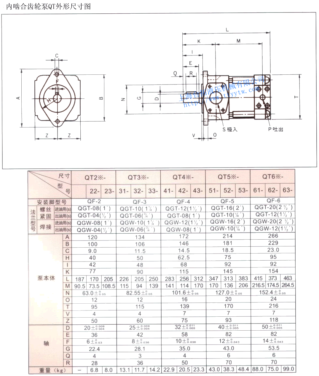 低壓內嚙合齒輪泵QT規格表