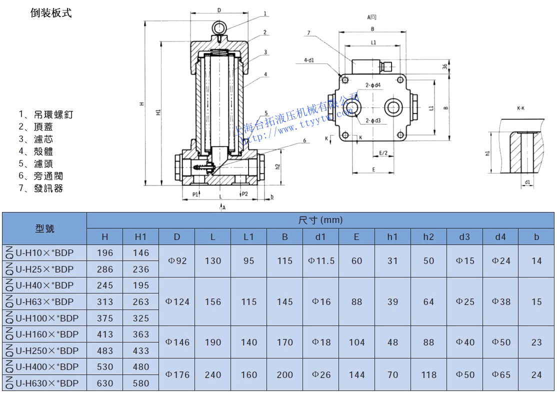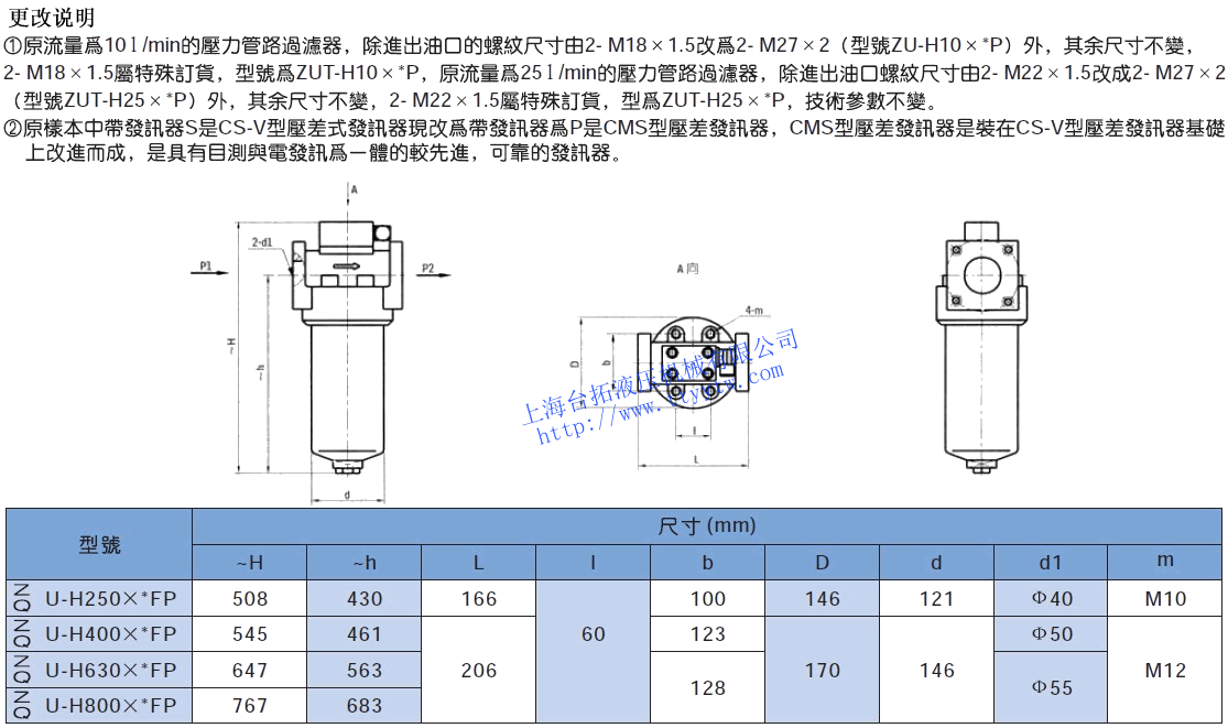 220V/50W3.6 HDX-10×*# 管式 QU-H10×*p 10 15 0.08 3.6 HDX-10×*# ZU-H25×*P 25 15 0.08 5.0 HDX-25×*# QU-H25×*p 25 15 0.08 5.0 HDX-25×*# ZU-H40×*P 40 20 0.1 8.0 HDX-40×*# QU-H40×*p 40 20 0.1 8.0 HDX-40×*# ZU-H63×*P 63 20 0.1 9.8 HDX-63×*# QU-H63×*p 63 20 0.1 9.8 HDX-63×*# ZU-H100×*P 100 25 0.1 12.0 HDX-100×*# QU-H100×*p 100 25 0.1 12.0 HDX-100×*# ZU-H160×*P 160 32 0.15 18.2 HDX-160×*# QU-H160×*p 160 32 0.15 18.2 HDX-160×*# ZU-H250×*FP 250 40 0.15 23.0 HDX-250×*# 法蘭式 QU-H250×*Fp 250 40 0.15 23.0 HDX-250×*# ZU-H400×*FP 400 50 0.2 33.8 HDX-400×*# QU-H400×*Fp 400 50 0.2 33.8 HDX-400×*# ZU-H630×*FP 630 53 0.2 42.0 HDX-630×*# QU-H630×*Fp 630 53 0.2 42.0 HDX-630×*# ZU-H800×*FP 800 53 0.2 42.0 HDX-800×*# QU-H800×*Fp 800 53 0.2 42.0 HDX-800×*# ZU-H10×*BP 10 15 0.08 5.7 HBX-10×*# 板式 QU-H10×*BP 10 15 0.08 5.7 HBX-10×*# ZU-H25×*BP 25 15 0.08 7.0 HBX-25×*# QU-H25×*BP 25 15 0.08 7.0 HBX-25×*# ZU-H40×*BP 40 20 0.1 11.5 HBX-40×*# QU-H40×*BP 40 20 0.1 11.5 HBX-40×*# ZU-H63×*BP 63 20 0.1 13.2 HBX-63×*# QU-H63×*BP 63 20 0.1 13.2 HBX-63×*# ZU-H100×*BP 100 25 0.1 15.0 HBX-100×*# QU-H100×*BP 100 25 0.1 15.0 HBX-100×*# ZU-H160×*BP 160 32 0.15 21.4 HBX-160×*# QU-H160×*BP 160 32 0.15 21.4 HBX-160×*# ZU-H250×*BP 250 40 0.15 25.7 HBX-250×*# QU-H250×*BP 250 40 0.15 25.7 HBX-250×*# ZU-H400×*BP 400 50 0.2 38.0 HBX-400×*# QU-H400×*BP 400 50 0.2 38.0 HBX-400×*# ZU-H630×*BP 630 50 0.2 42.3 HBX-630×*# QU-H630×*BP 630 50 0.2 42.3 HBX-630×*# ZU-H10×*DLP 10 15 0.08 8.5 HDX-10×*# 倒裝管式 QU-H10×*DLP 10 15 0.08 8.5 HDX-10×*# ZU-H25×*DLP 25 15 0.08 9.9 HDX-25×*# QU-H25×*DLP 25 15 0.08 9.9 HDX-25×*# ZU-H40×*DLP 40 20 0.1 16.4 HDX-40×*# QU-H40×*DLP 40 20 0.1 16.4 HDX-40×*# ZU-H63×*DLP 63 20 0.1 18.9 HDX-63×*# QU-H63×*DLP 63 20 0.1 18.9 HDX-63×*# ZU-H100×*DLP 100 25 0.1 22.5 HDX-100×*# QU-H100×*DLP 100 25 0.1 22.5 HDX-100×*# ZU-H160×*DLP 160 32 0.15 33.4 HDX-160×*# QU-H160×*DLP 160 32 0.15 33.4 HDX-160×*# ZU-H10×*DFP 10 15 0.08 8.6 HDX-10×*# 倒裝法蘭式 QU-H10×*DFP 10 15 0.08 8.6 HDX-10×*# ZU-H25×*DFP 25 15 0.08 10.0 HDX-25×*# QU-H25×*DFP 25 15 0.08 10.0 HDX-25×*# ZU-H40×*DFP 40 20 0.1 16.6 HDX-40×*# QU-H40×*DFP 40 20 0.1 16.6 HDX-40×*# ZU-H63×*DFP 63 20 0.1 19.2 HDX-63×*# QU-H63×*DFP 63 20 0.1 19.2 HDX-63×*# ZU-H100×*DFP 100 25 0.1 22.9 HDX-100×*# QU-H100×*DFP 100 25 0.1 22.9 HDX-100×*# ZU-H160×*DFP 160 32 0.15 34.0 HDX-160×*# QU-H160×*DFP 160 32 0.15 34.0 HDX-160×*# ZU-H250×*DFP 250 40 0.15 41.9 HDX-250×*# QU-H250×*DFP 250 40 0.15 41.9 HDX-250×*# ZU-H400×*DFP 400 50 0.2 57.6 HDX-400×*# QU-H400×*DFP 400 50 0.2 57.6 HDX-400×*# ZU-H630×*DFP 630 53 0.2 62.4 HDX-630×*# QU-H630×*DFP 630 53 0.2 62.4 HDX-630×*# ZU-H10×*DFAP 10 15 0.08 8.6 HDX-10×*# 倒裝法蘭式A型 QU-H10×*DFAP 10 15 0.08 8.6 HDX-10×*# ZU-H25×*DFAP 25 15 0.08 10.0 HDX-25×*# QU-H25×*DFAP 25 15 0.08 10.0 HDX-25×*# ZU-H40×*DFAP 40 20 0.1 16.6 HDX-40×*# QU-H40×*DFAP 40 20 0.1 16.6 HDX-40×*# ZU-H63×*DFAP 63 20 0.1 19.2 HDX-63×*# QU-H63×*DFAP 63 20 0.1 19.2 HDX-63×*# ZU-H100×*DFAP 100 25 0.1 22.9 HDX-100×*# QU-H100×*DFAP 100 25 0.1 22.9 HDX-100×*# ZU-H160×*DFAP 160 32 0.15 34.0 HDX-160×*# QU-H160×*DFAP 160 32 0.15 34.0 HDX-160×*# ZU-H250×*DFAP 250 40 0.15 41.9 HDX-250×*# QU-H250×*DFAP 250 40 0.15 41.9 HDX-250×*# ZU-H400×*DFAP 400 50 0.2 57.6 HDX-400×*# QU-H400×*DFAP 400 50 0.2 57.6 HDX-400×*# ZU-H630×*DFAP 630 53 0.2 62.4 HDX-630×*# QU-H630×*DFAP 630 53 0.2 62.4 HDX-630×*# ZU-H10×*DFBP 10 15 0.08 8.6 HDX-10×*# 倒裝法蘭式B型 QU-H10×*DFBP 10 15 0.08 8.6 HDX-10×*# ZU-H25×*DFBP 25 15 0.08 10.0 HDX-25×*# QU-H25×*DFBP 25 15 0.08 10.0 HDX-25×*# ZU-H40×*DFBP 40 20 0.1 16.6 HDX-40×*# QU-H40×*DFBP 40 20 0.1 16.6 HDX-40×*# ZU-H63×*DFBP 63 20 0.1 19.2 HDX-63×*# QU-H63×*DFBP 63 20 0.1 19.2 HDX-63×*# ZU-H100×*DFBP 100 25 0.1 22.9 HDX-100×*# QU-H100×*DFBP 100 25 0.1 22.9 HDX-100×*# ZU-H160×*DFBP 160 32 0.15 34.0 HDX-160×*# QU-H160×*DFBP 160 32 0.15 34.0 HDX-160×*# ZU-H250×*DFBP 250 40 0.15 41.9 HDX-250×*# QU-H250×*DFBP 250 40 0.15 41.9 HDX-250×*# ZU-H400×*DFBP 400 50 0.2 57.6 HDX-400×*# QU-H400×*DFBP 400 50 0.2 57.6 HDX-400×*# ZU-H630×*DFBP 630 53 0.2 62.4 HDX-630×*# QU-H630×*DFBP 630 53 0.2 62.4 HDX-630×*# ZU-H10×*BDP 10 15 0.08 8.4 HDX-10×*# 倒裝法蘭式 QU-H10×*BDP 10 15 0.08 8.4 HDX-10×*# ZU-H25×*BDP 25 15 0.08 9.8 HDX-25×*# QU-H25×*BDP 25 15 0.08 9.8 HDX-25×*# ZU-H40×*BDP 40 20 0.1 16.3 HDX-40×*# QU-H40×*BDP 40 20 0.1 16.3 HDX-40×*# ZU-H63×*BDP 63 20 0.1 18.9 HDX-63×*# QU-H63×*BDP 63 20 0.1 18.9 HDX-63×*# ZU-H100×*BDP 100 25 0.1 22.5 HDX-100×*# QU-H100×*BDP 100 25 0.1 22.5 HDX-100×*# ZU-H160×*BDP 160 32 0.15 33.6 HDX-160×*# QU-H160×*BDP 160 32 0.15 33.6 HDX-160×*# ZU-H250×*BDP 250 40 0.15 41.3 HDX-250×*# QU-H250×*BDP 250 40 0.15 41.3 HDX-250×*# ZU-H400×*BDP 400 50 0.2 57.0 HDX-400×*# QU-H400×*BDP 400 50 0.2 57.0 HDX-400×*# ZU-H630×*BDP 630 50 0.2 61.8 HDX-630×*# QU-H630×*BDP 630 50 0.2 61.8 HDX-630×*# 備注:*為過濾精度,#為過濾材料,若使用介質為水-乙二醇,濾材為紙質,帶發訊器和旁通閥,則過濾器型號為:ZUI.BH-H63×*P,濾芯型號為HX.BH-63×*,濾材為化纖,帶發訊器,則過濾器型號為QU.BH-63×*Q,濾芯型號為HX.BH-63×*Q濾材為金屬鋼,帶發訊器,則過濾型號為:WU.BH-63×*P,濾芯型號為HX-63×*W。