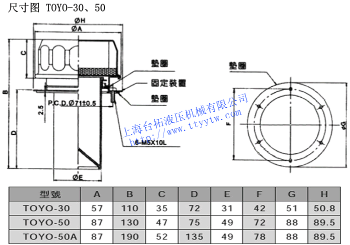 TOYO -50 - -P -R 系列號碼 濾網直徑 濾網型式 濾網材質 規格 加油口 30:?30mm