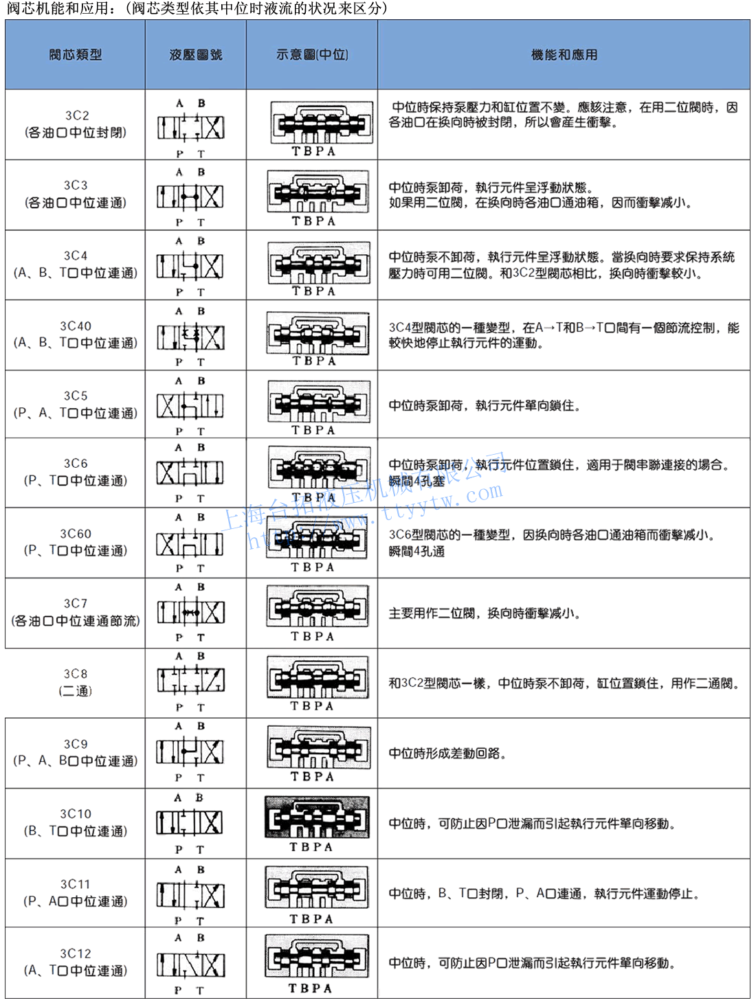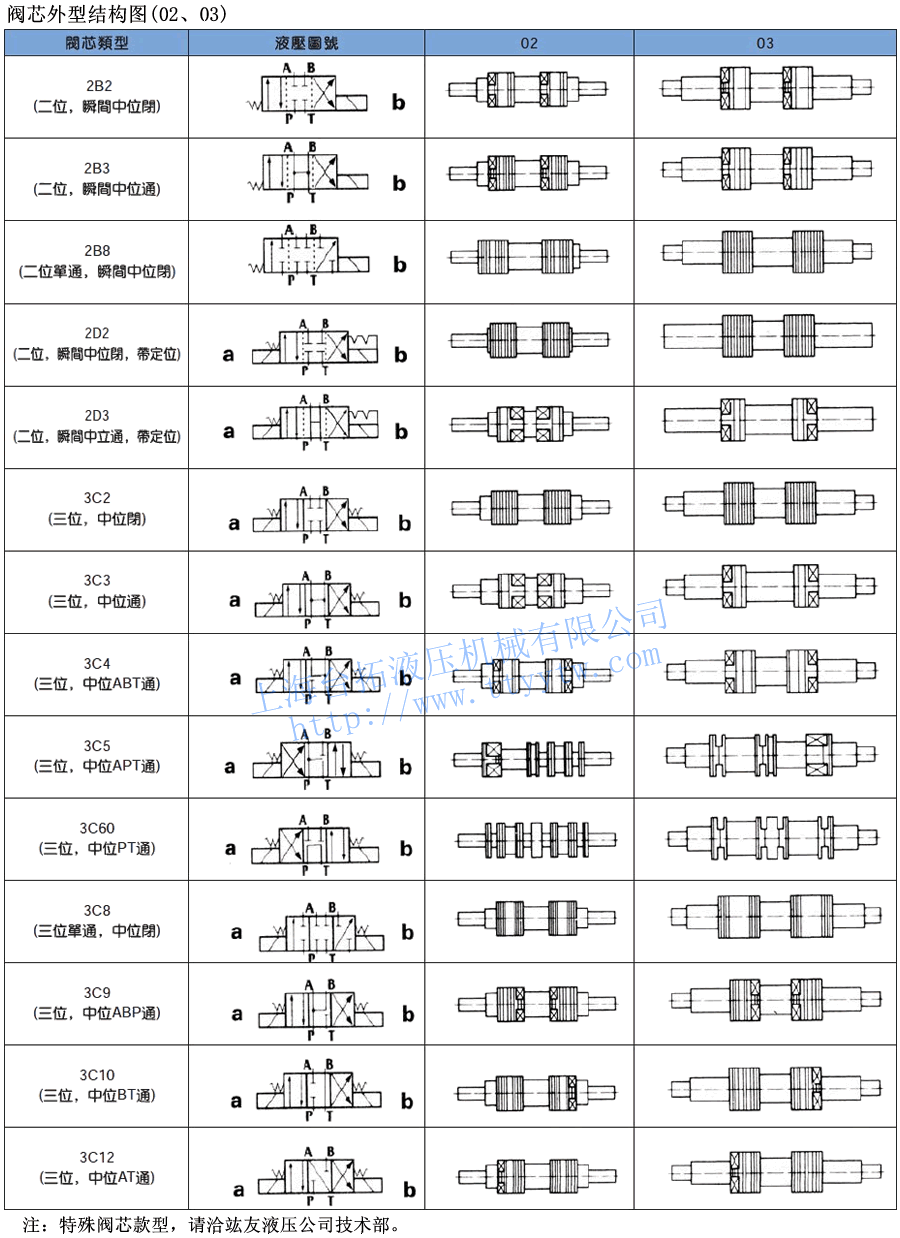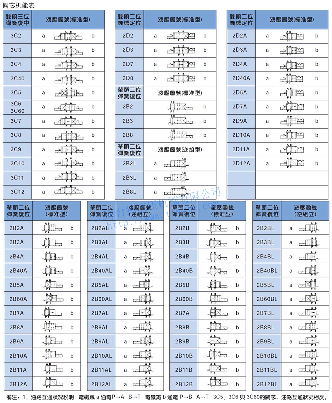 (彈簧中位)備注:1、未列之閥芯形式請參考閥芯種類表。2、插頭型和接線盒型本身均帶有指示燈。