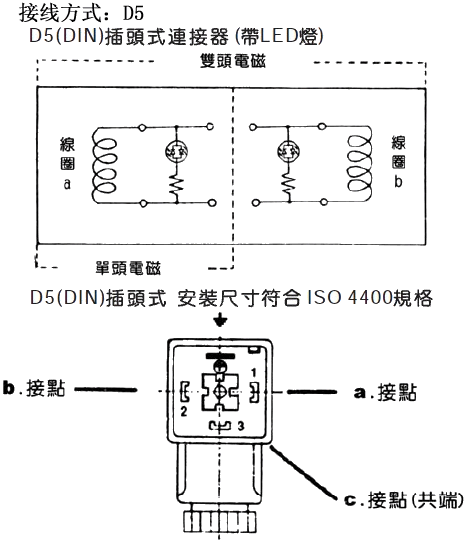 -02 -2 B 2 L -A1 5 - 型號說明 規格 閥芯機能 線圈型式 頻率 指示燈 閥位數 彈簧配置 閥芯型式 電磁鐵位置 D5:插頭型