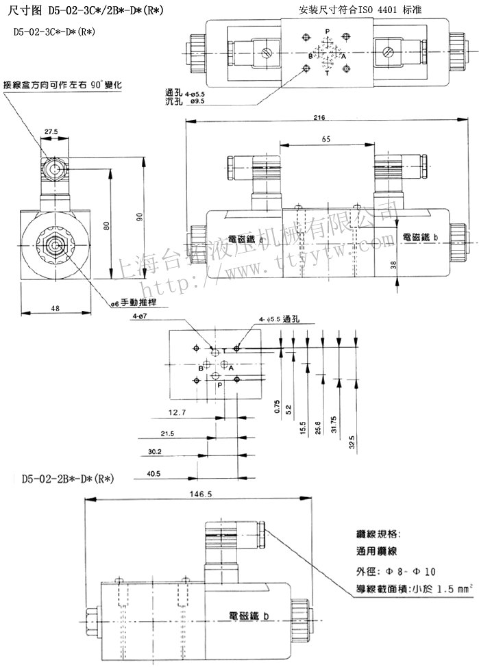 電磁換向閥D5-02-3C*/2B*-A*尺寸圖下載 電磁換向閥D5-02-3C*/2B*-D*(R*)下載