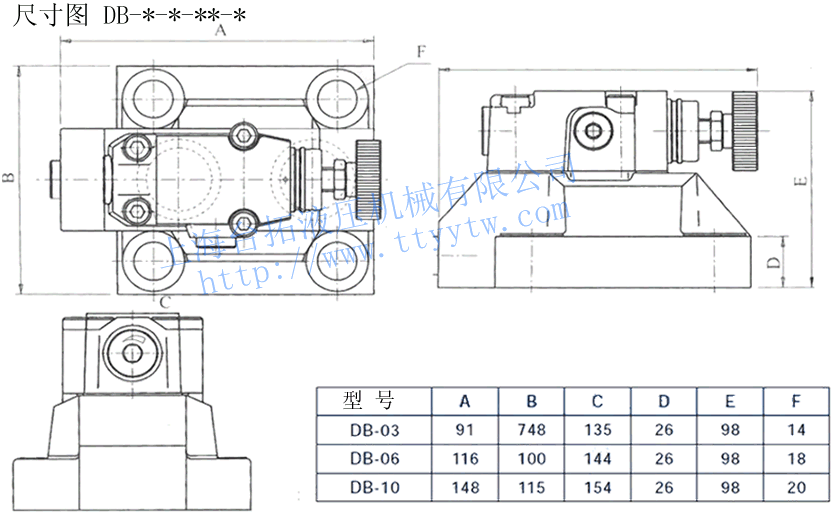 3::12~350kg/cm2靜音型先導(dǎo)式溢流閥DB規(guī)格表
