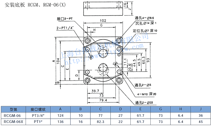 減壓閥RCGM RGM 03(X)安裝底板下載 減壓閥RCGM RGM 06(X)安裝底板下載