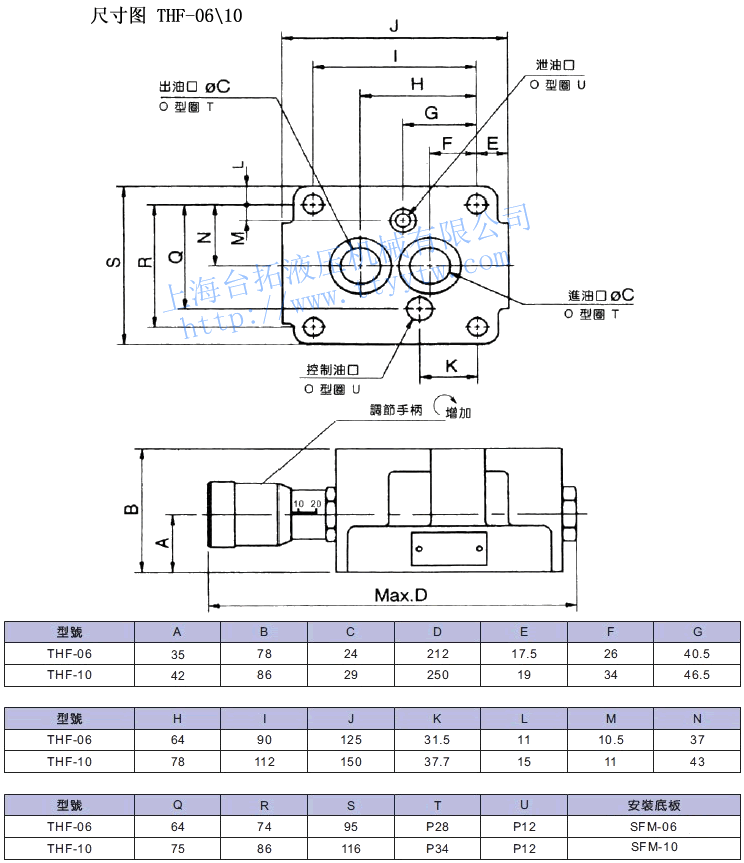 —:附電磁閥詳見電磁閥規(guī)格 電磁控制調(diào)速閥THF規(guī)格表