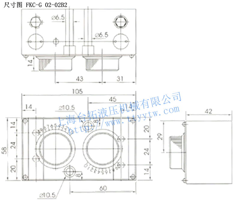 型 號(hào) 流量調(diào)整范圍?/min 最高使用壓力kg/cm2 自由流量?/min 接線(xiàn)口徑 FKC-G 02001-02B2 0.1~1 70 20 PT 1/4 FKC-G 02002-02B2 0.1~2 FKC-G 02004-02B2 0.1~4 調(diào)速閥FKC-G 02-02B2尺寸圖