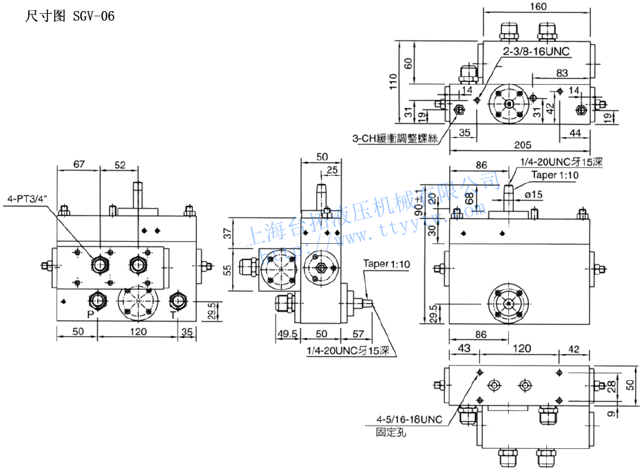 型號 最大流量?/min 最大壓力MPa 口徑 臺面 SGV-06-63 80 4 PT 3/8" 600×1000 SGV-06-75 80 600×1200 機械式方向閥SGV-06尺寸圖