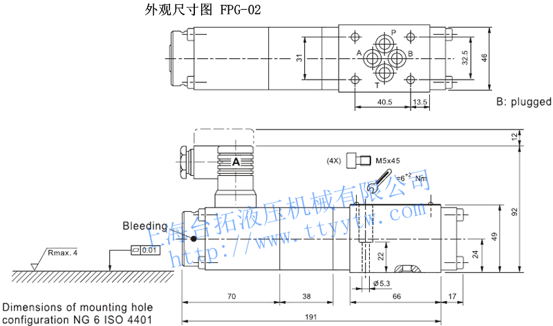 FPE-081裝配螺栓:4-M5×45 扭矩:6-8Nm。最小設定壓力0bar或在T孔壓力。