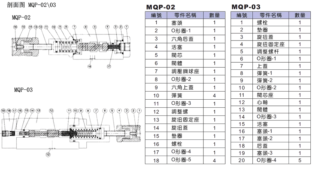 C:3.5~141.1 MQP-03 4.2 疊加式順序閥MQP剖面圖