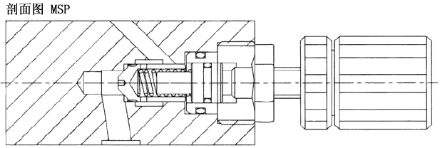 型號(hào) 最高使用壓力 Mpa 最大流量 ?/min 重量 Kg MSP-02 25 30 1.0 MSP-03 50 2.7 疊加式止逆節(jié)流閥MSP剖面圖