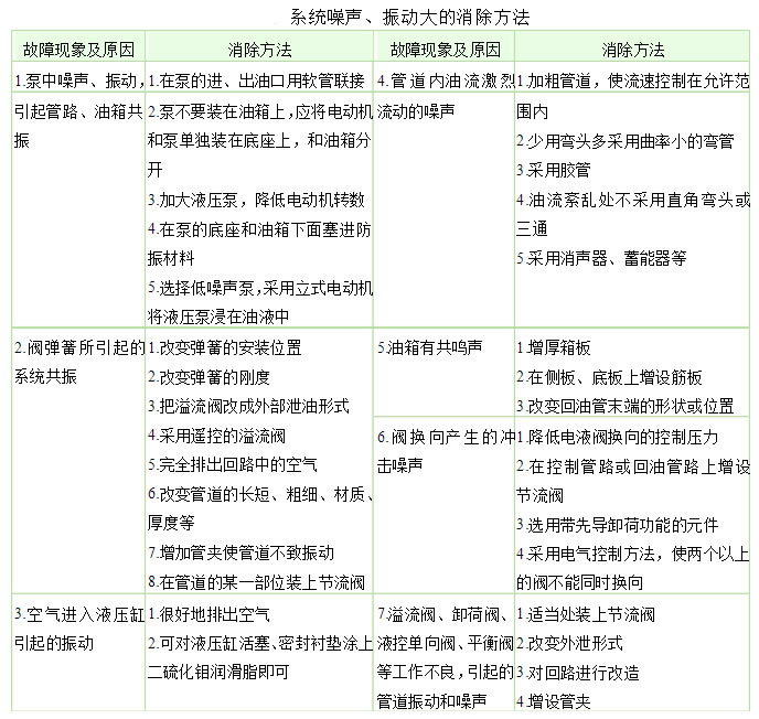 液壓系統 噪聲、振動大的消除方法
