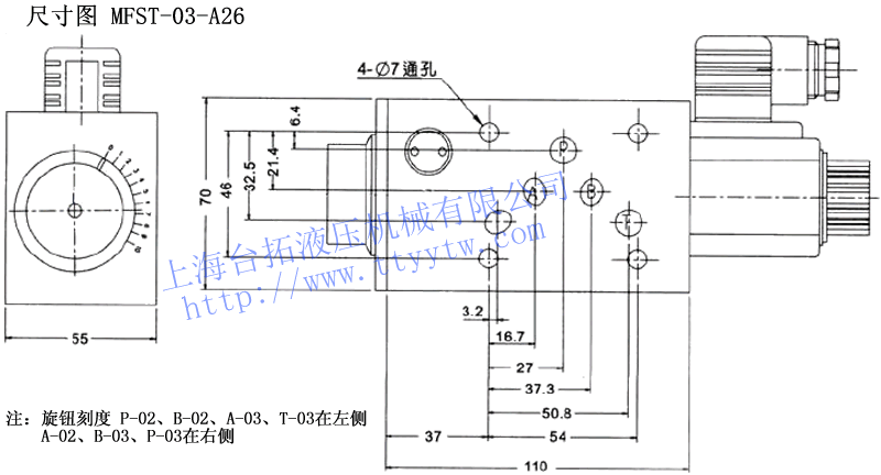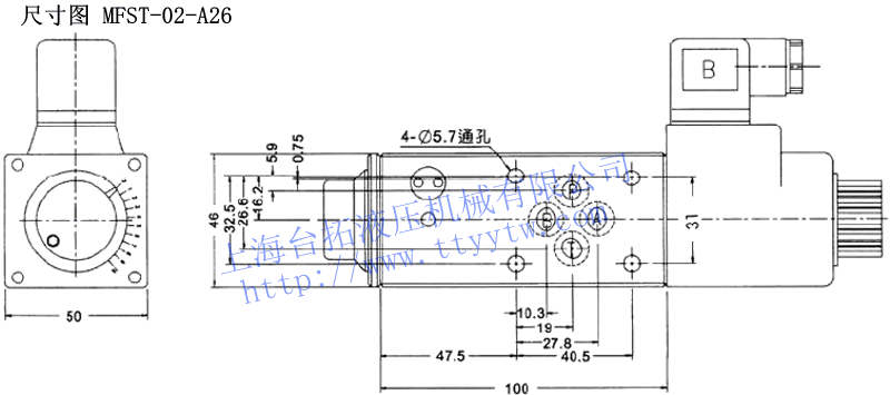 6:60HZ備注:疊加式電磁流量閥MFS系列P入油控制,T、A、B回油控制。