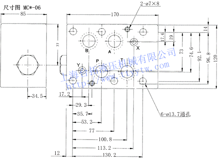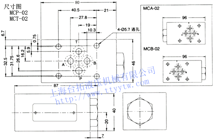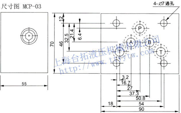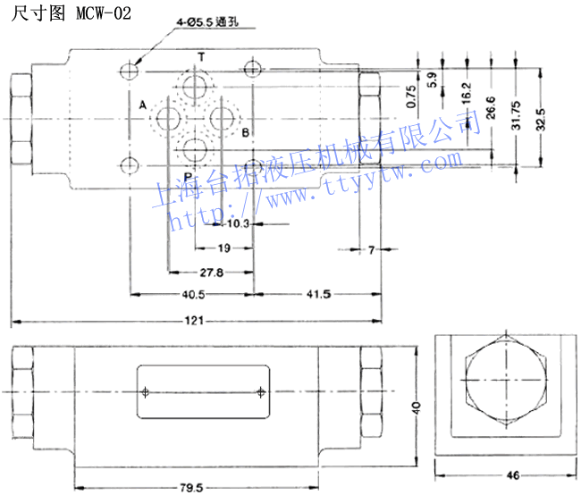 疊加式單向閥MCP,A,B,T,W尺寸圖