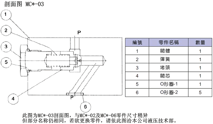 MC P -02 -B 系列號(hào)碼 控制油路 規(guī)格 開啟壓力 疊加式單向閥 P:P油路