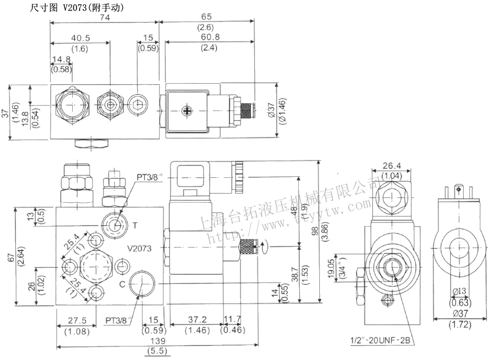 V2073 -*** -** -10 系列號碼 線圈型式 可選方式 設計號 電動止回閥 D12:DC12V
