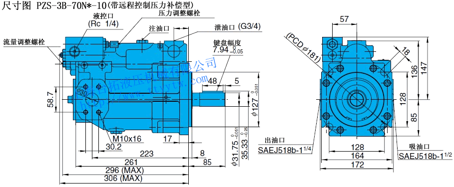 變量柱塞泵PZS-3B-70N*Q*-10尺寸圖下載 變量柱塞泵PZS-4B-100N*Q*-10尺寸圖下載