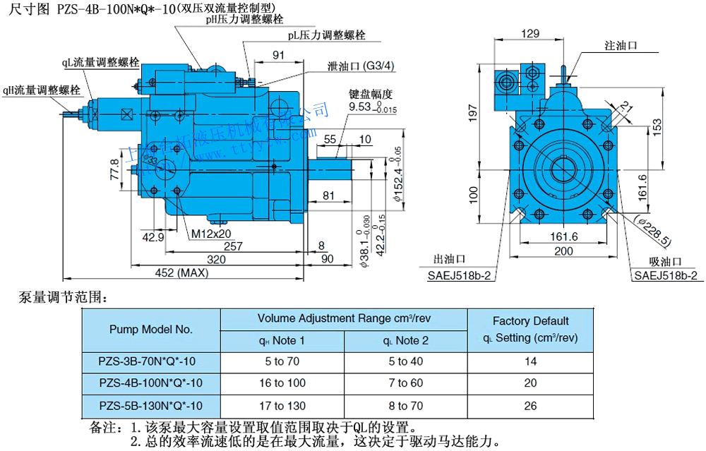 4:2~28Mpa10 備注:PZS-5B/6B最大工作壓力為25MPa(255kgf/cm2)。
