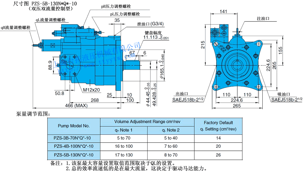 (124~220)21 3.6~63.9 21 2~7 25 500 1500 2-1/2" 3" 3/4" 136 PZS-6B-220*3-10 2~21 PZS-6B-220*4-10 2~25 備注1:a、固定的泵浦可通過與IP泵浦連結。b、泵浦控制形式為N,RS,WS,NQ。c、上述型號柱塞泵均為順時針方向(從軸端看)。