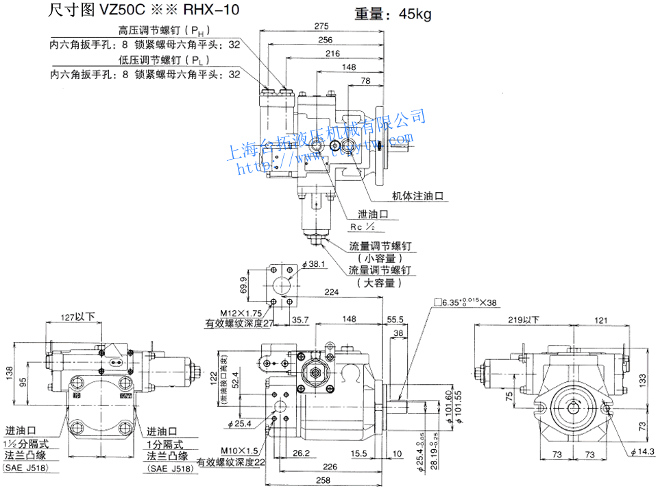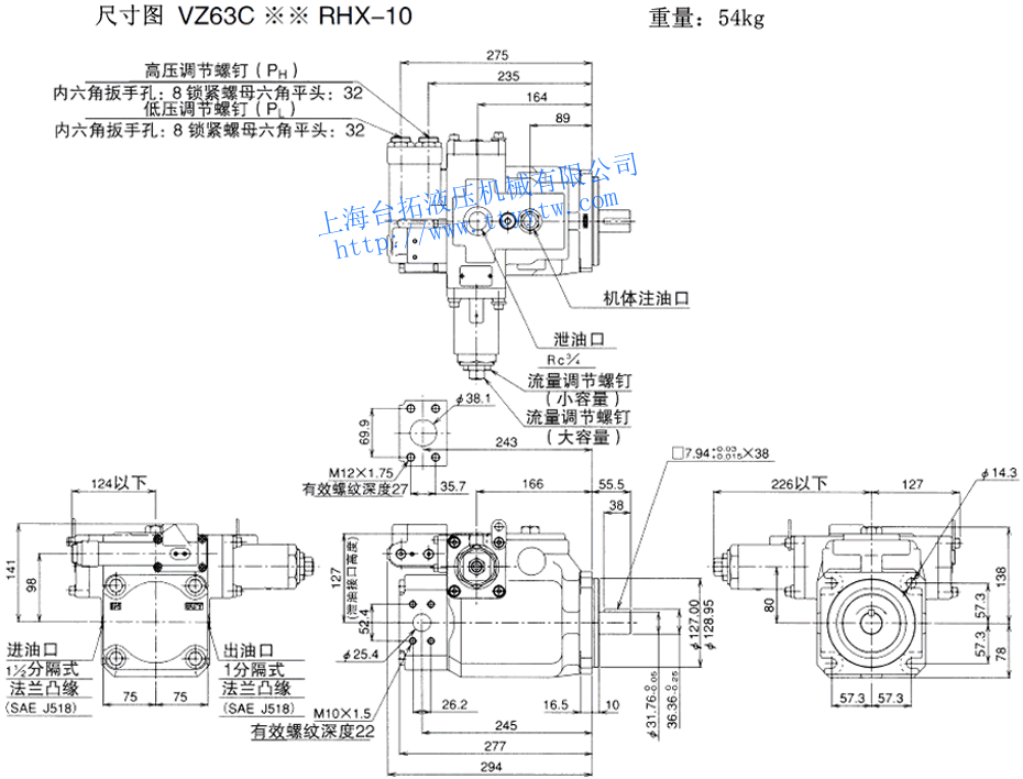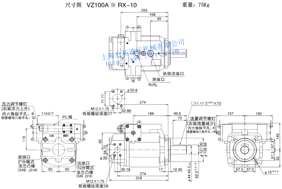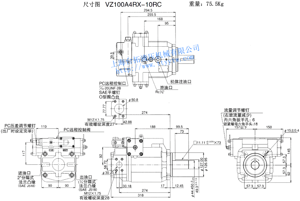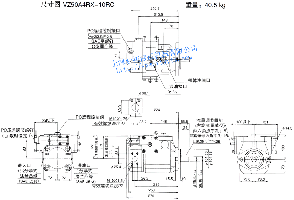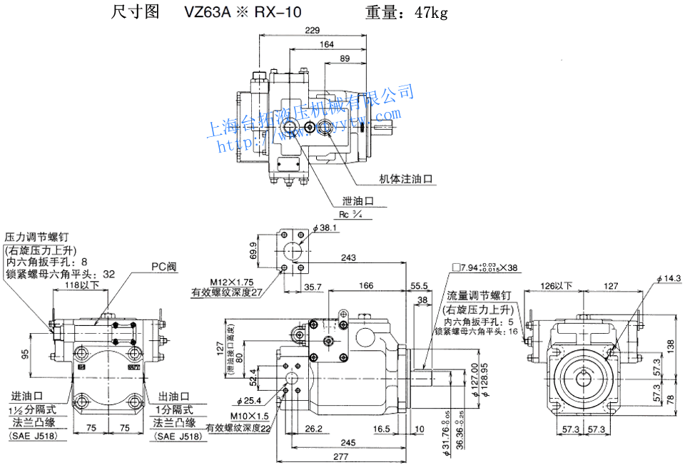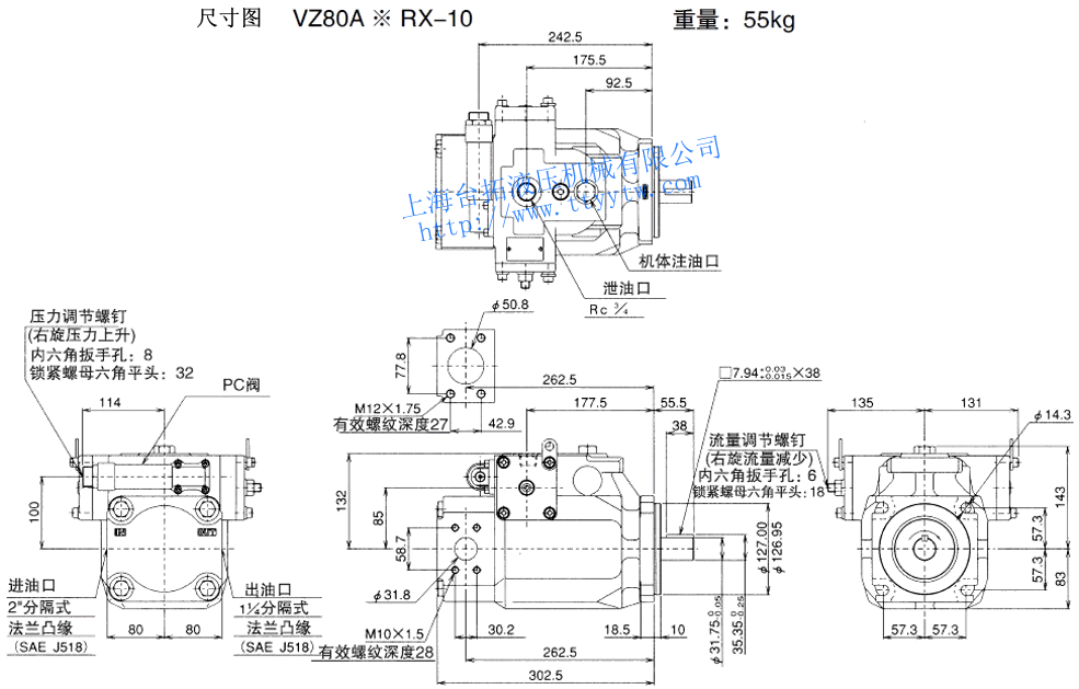 變量柱塞泵VZ50A*RX-10尺寸圖下載 變量柱塞泵VZ50A4RX-10RC尺寸圖下載