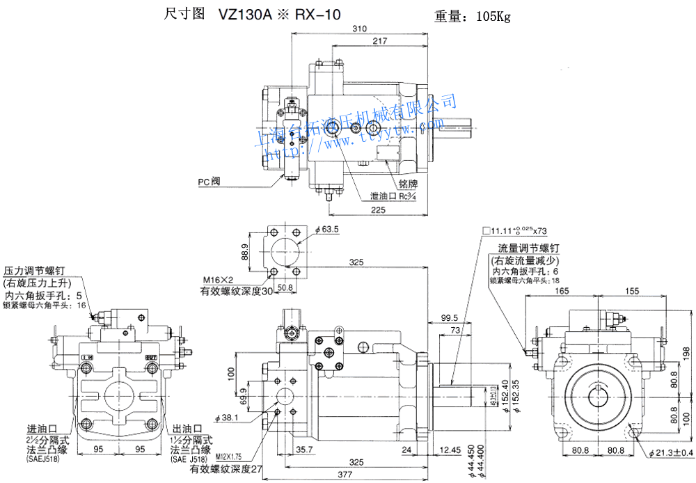 變量柱塞泵VZ130A*RX-10尺寸圖下載 變量柱塞泵VZ130A*RX-10RC尺寸圖下載