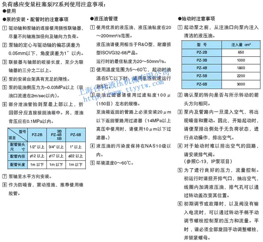 負荷感應變量柱塞泵PZ系列使用注意事項