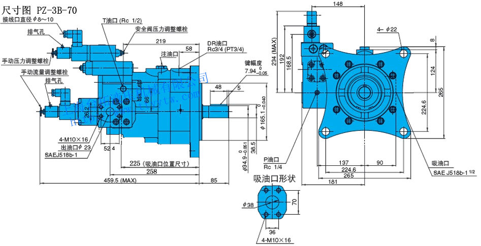 負荷感應變量柱塞泵PZ-2B-35/45尺寸圖下載 負荷感應變量柱塞泵PZ-3B-70尺寸圖下載