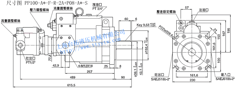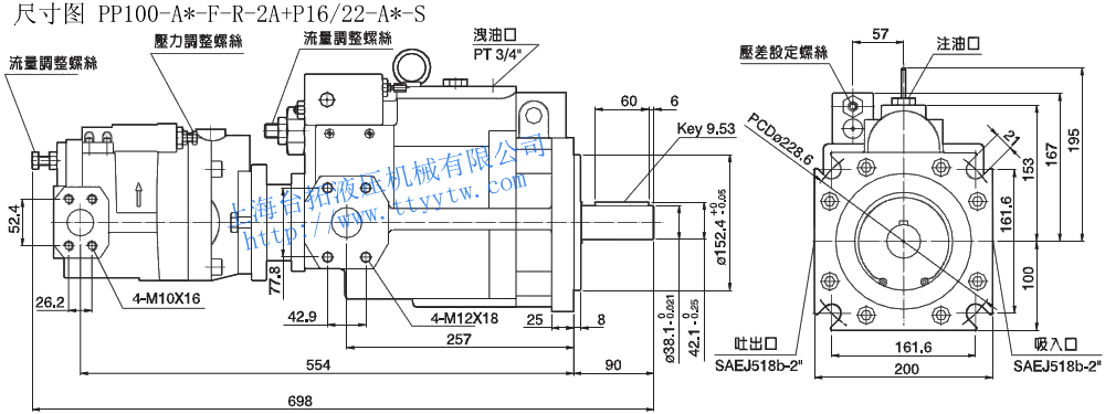 雙聯變量柱塞泵PP16~PP100尺寸圖