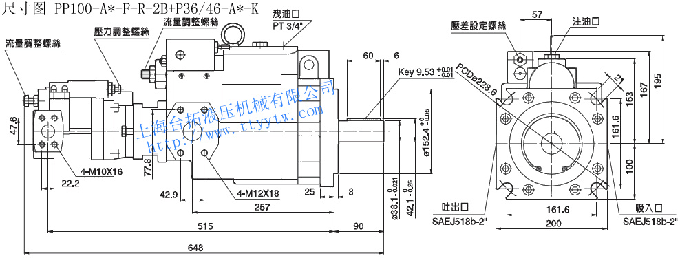 雙聯變量柱塞泵PP100-A*-F-R-2B+P36/46-A*-K尺寸圖下載 雙聯變量柱塞泵PP100-A*-F-R-2A+P16/22-A*-S尺寸圖下載