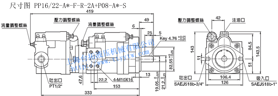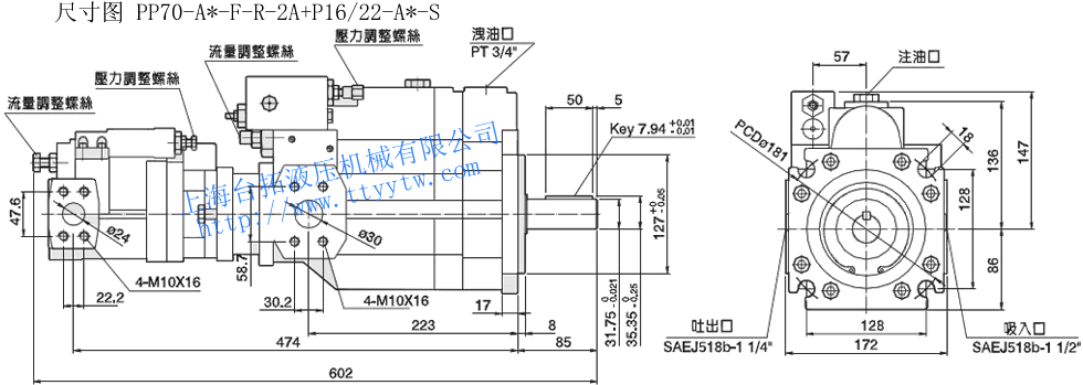 雙聯變量柱塞泵PP16/22-A*-F-R-2A+P08-A*-S尺寸圖下載 雙聯變量柱塞泵PP16/22-A*-F-R-2A+P16/22-A*-S尺寸圖下載