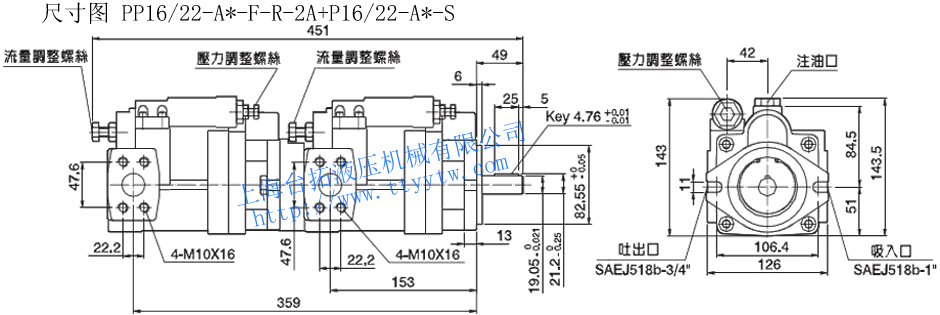 雙聯變量柱塞泵PP36/46-A*-F-R-2A+P16/22-A*-S尺寸圖下載 雙聯變量柱塞泵PP70-A*-F-R-2A+P16/22-A*-S尺寸圖下載