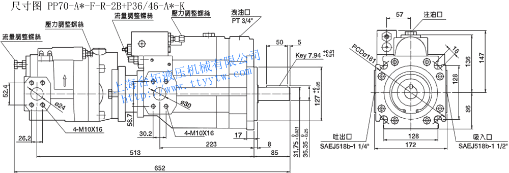 (PP70+P36/46, PP100+P36/46)雙聯變量柱塞泵(后蓋側泵)型式規格